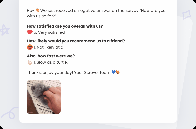 It makes Screver the ideal solution for tracking and analyzing NPS feedback. It will help you identify the issues people encounter while engaging with your product and company, allowing you to address them and prevent negative word of mouth. Thanks to that, you can build stable foundations for a positive customer and employee journey and increase loyalty.