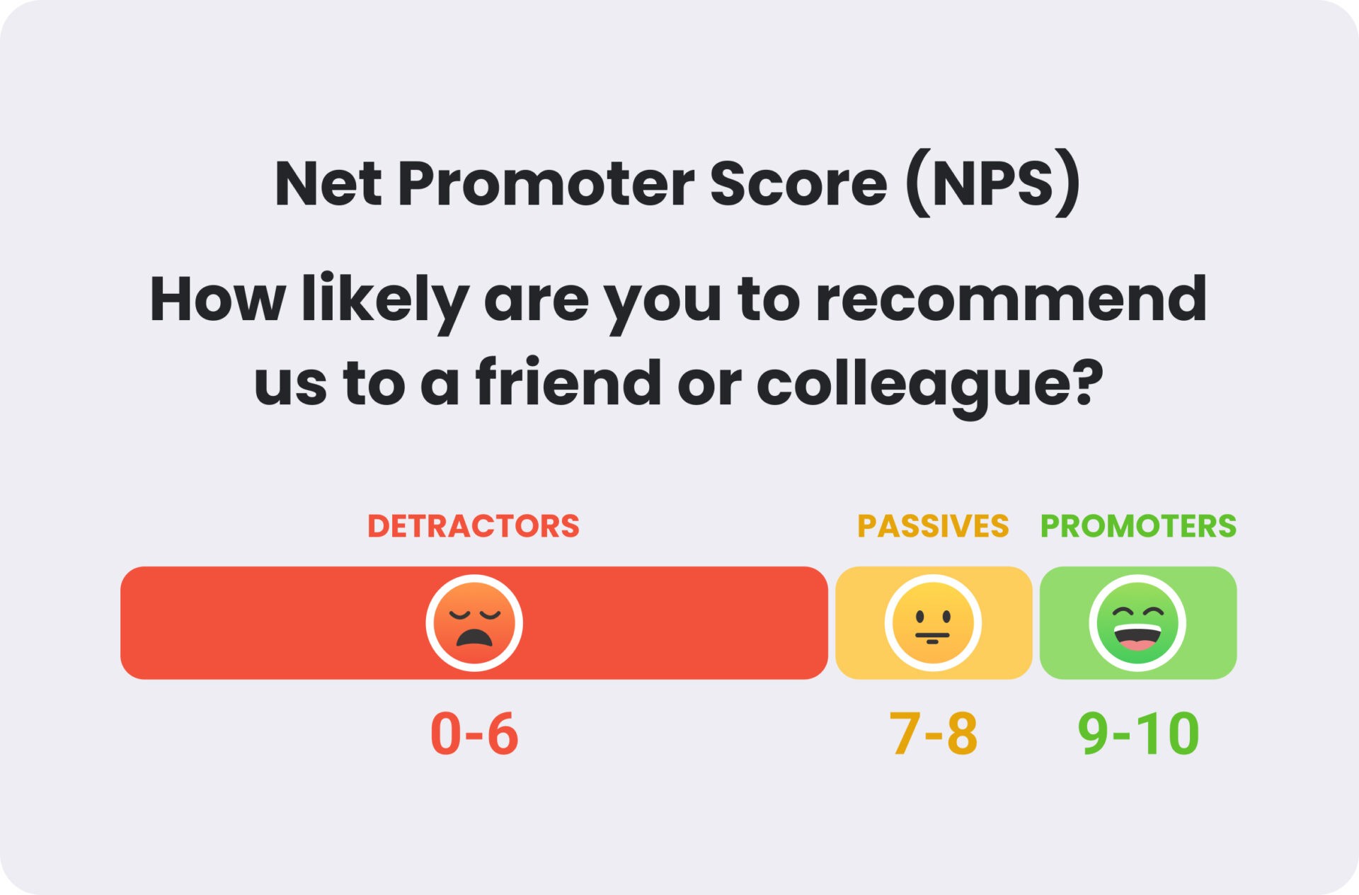Every company can formulate the question differently, but customers always get the rating option that reflects their satisfaction with the brand. The responses also place every respondent in one of the three categories: