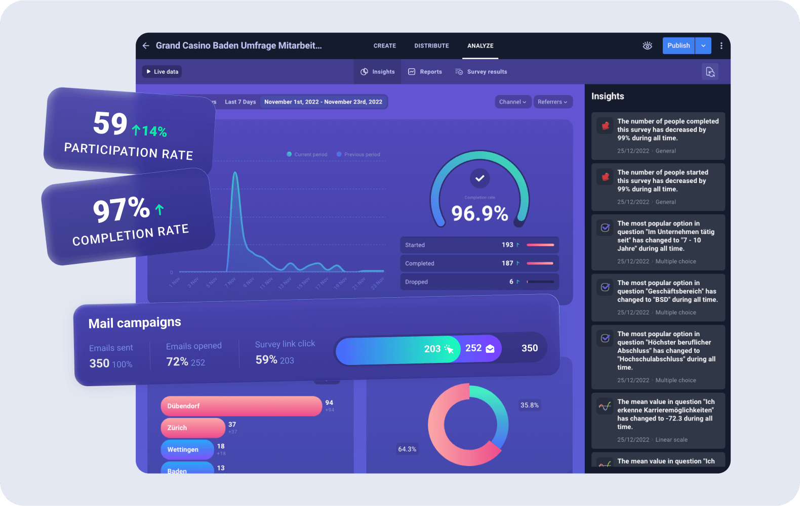 The revamped survey gave Stadtcasino Baden crucial insights into employees’ experiences, needs, and concerns. The rich data collected allowed the company to: