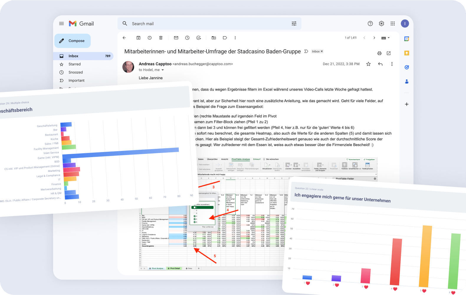 Absolutely, it was really impressive to see how engaged the employees were with the survey. But what really stood out to me was the dedication of the leadership team at Stadtcasino Baden, particularly Jannine. They were so committed to create a positive work environment and drive the cultural change. It was really inspiring to work together😌