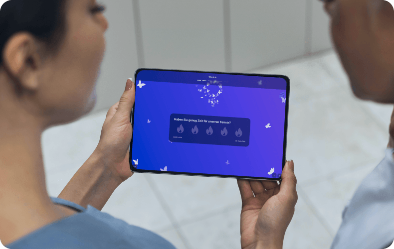 Ease of access was paramount: patients were handed tablets by the nursing staff, allowing immediate engagement. The surveys are designed for engagement and user-friendliness. Participation is encouraged through clear and engaging questions.