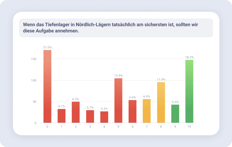 Here, for example, we can see that the population divides almost equally along the line “accept the repository” and “do not accept”